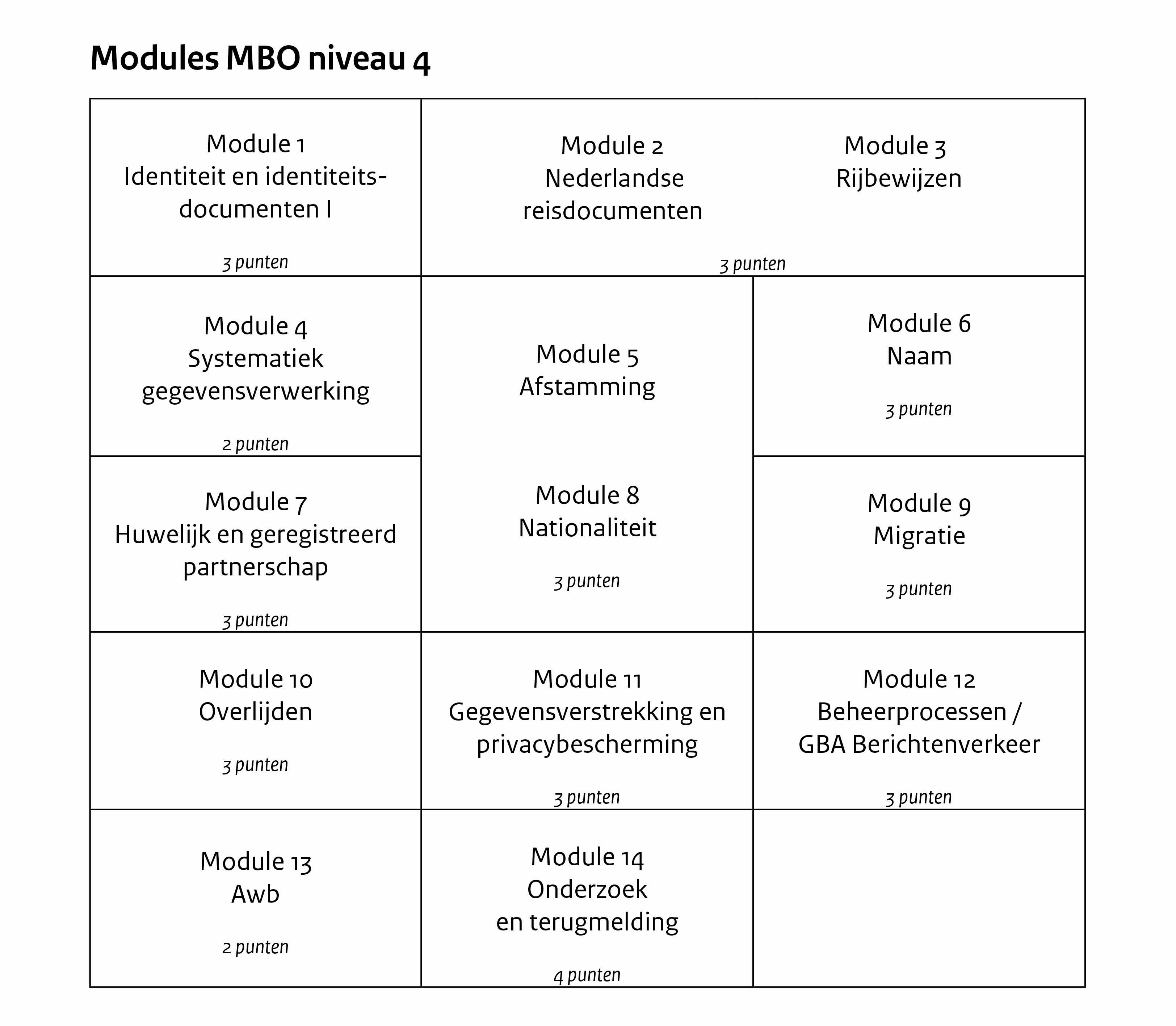 Bekijk hier het 'puntenoverzicht van Modules MBO niveau 4'
